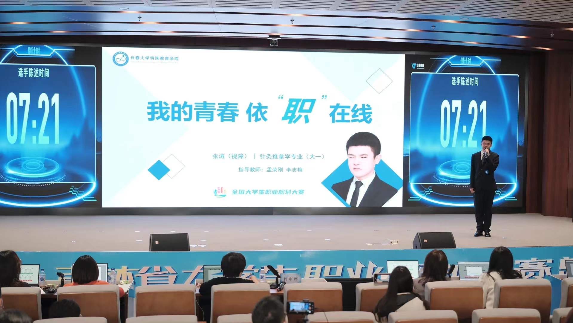 本次大賽共有全省高校11萬名在校生報名參加,經近6個月的逐層角逐,我校3名學生進入省總決賽。經主題陳述、評委提問、天降實習offer三個環節的競賽,我校特殊教育學院張濤獲高教組成長賽道金獎,管理學院工商管理專業紀紫韻獲成長賽道銀獎,特殊教育學院遲榮星獲就業賽道銀獎,我校程愛琪、孟榮剛等5名教師獲評“優秀指導教師”,所獲成績在省屬高校中名列前茅。