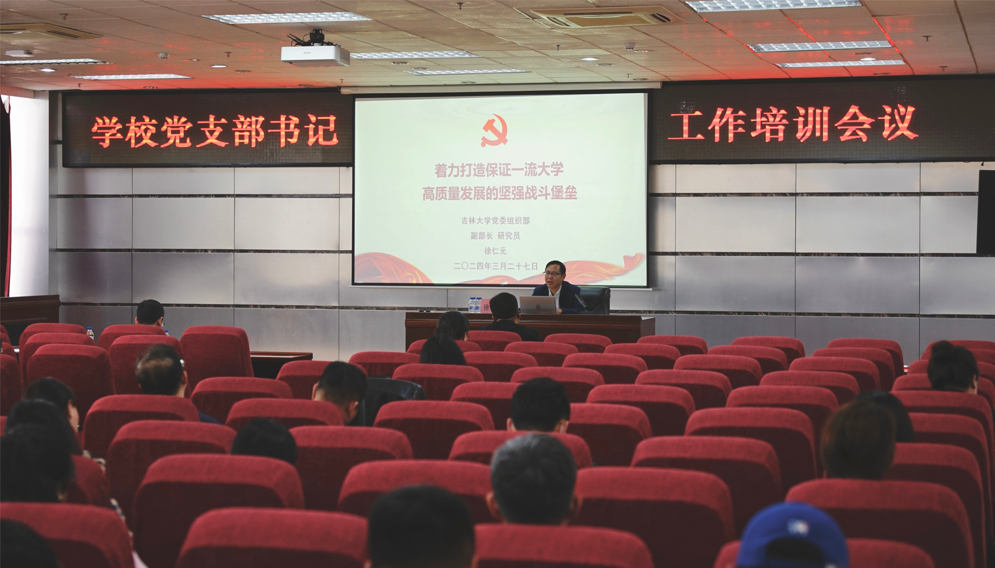 3月27日培訓會上,吉林大學黨委組織部副部長徐仁元以《著力打造服務一流大學高質量發展的堅強戰斗堡壘》為題作專題報告,他重點圍繞黨建工作高質發展需要堅持政治引領、堅持思想引領、堅持組織引領、堅持機制引領等四個方面內容展開講解,結合生動鮮活的工作實例,內容豐富、重點突出、針對性強,最后,他詳細講解了黨支部工作政治把關的主要內容與工作要求,既有理論高度,也有實踐廣度,對于學校全體黨支部書記黨務工作能力提升具有很強的指導意義;黨委組織部副處級組織員孟陽以《新時代高校黨支部書記以高質量黨建促進履職能力提質增效》為題作專題報告,分別從加強理論學習,提高理論素養,規范“三會一課”制度;以人的思想之變,推動事業發展之變;工作中統籌兼顧,落實黨建與業務工作高度融合等三個方面進行了深入淺出的講解。